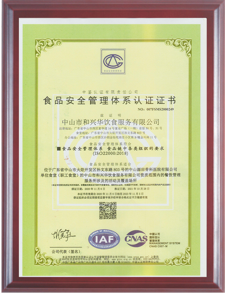嚴(yán)格執(zhí)行“8S”及HACCP管理,PDCA, 營(yíng)造安全、舒適的食堂環(huán)境員工管理實(shí)行考核制度,實(shí)行持證上崗定期舉行員工技能培訓(xùn),不斷提升員工服務(wù)質(zhì)量