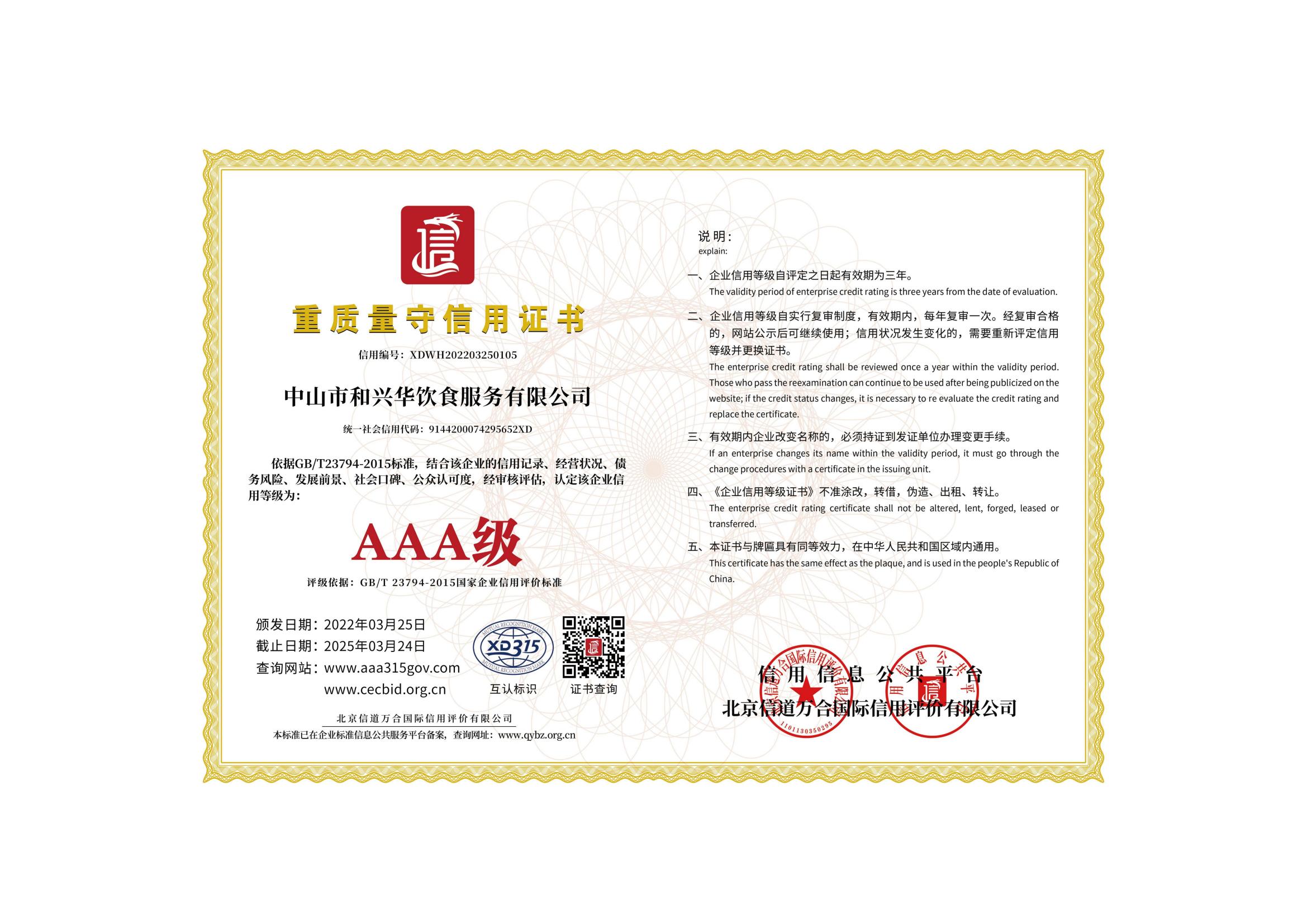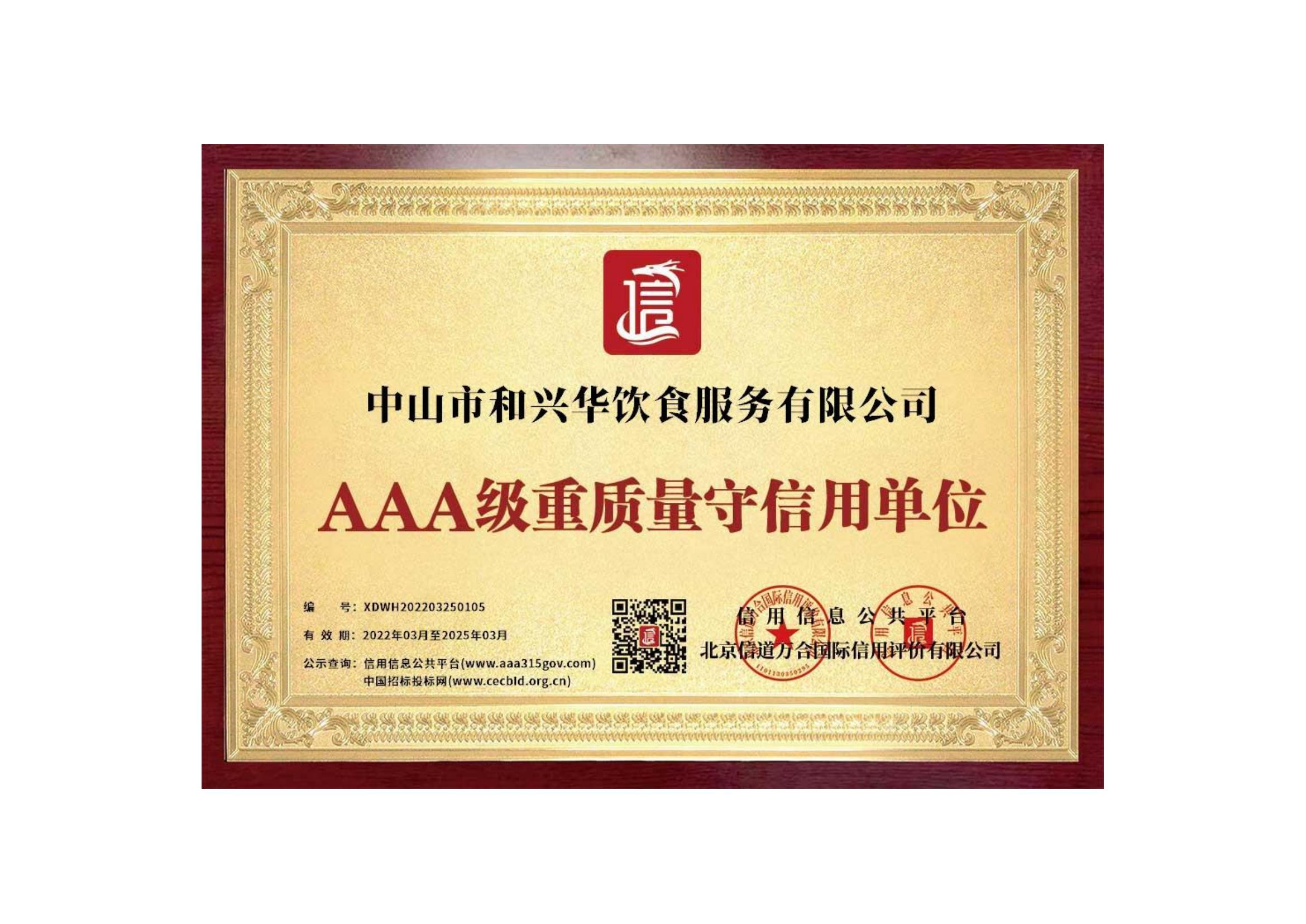 誠(chéng)信經(jīng)營(yíng)示范單位3A